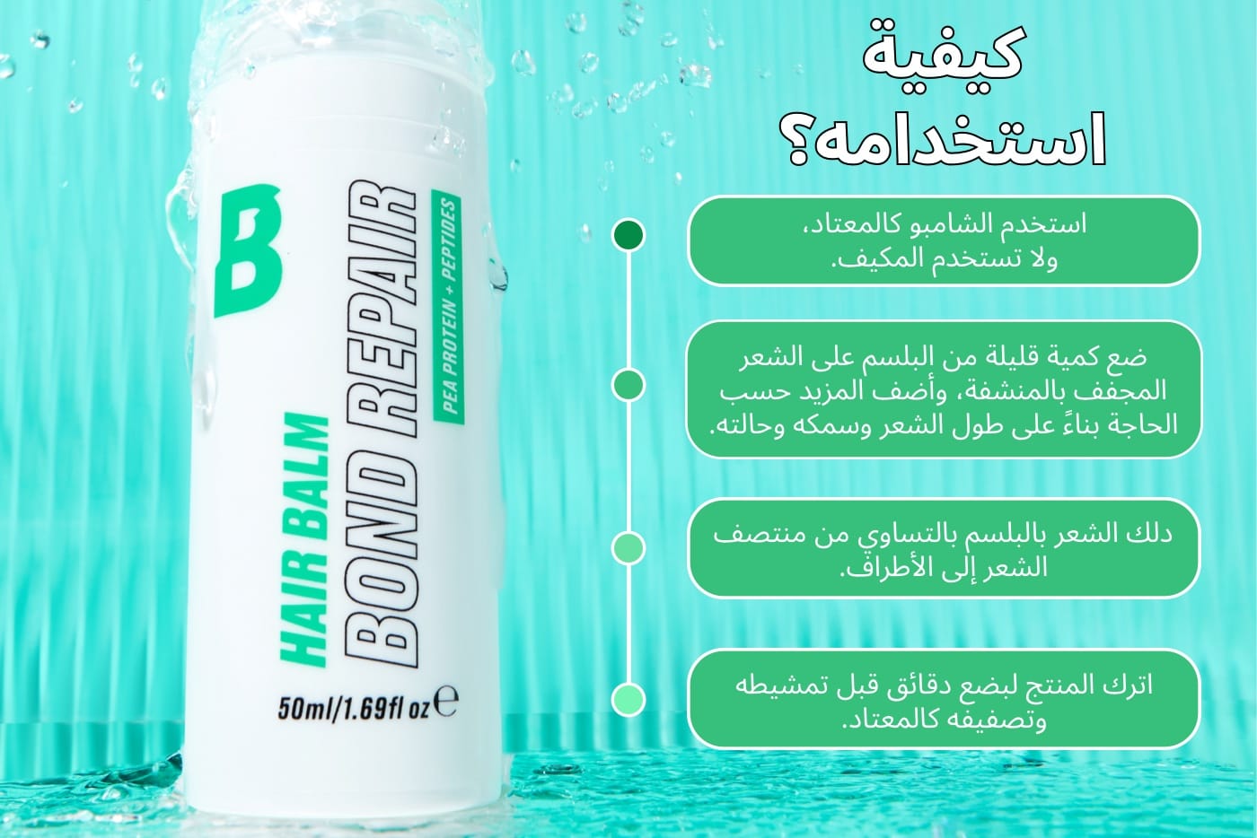نقدم لك مخلص العناية بالشعر الجديد، مرطب الشعر Bond Repair Hair Balm من Haircare By BEAUTY BAY. يساعد هذا المرطب العميق المغذي على تقوية الشعر من العمق داخل الألياف، ويدعم بناء وربط الروابط، ويحمي مرونة الشعر ويساعد على إعادة ربط سلاسل الشعر المكسورة، مع التليين والتنعيم. كما يقلل من تكسر الشعر والضرر، ويرطب لتحسين مظهر الكثافة منذ الاستخدام الأول. مناسب لجميع أنواع الشعر، خاصة الشعر الجاف والتالف والمتعرض للتلف، يعتبر هذا المنتج المحتوي على بروتين البازلاء والببتيد إضافة أساسية لروتين العناية بالشعر.