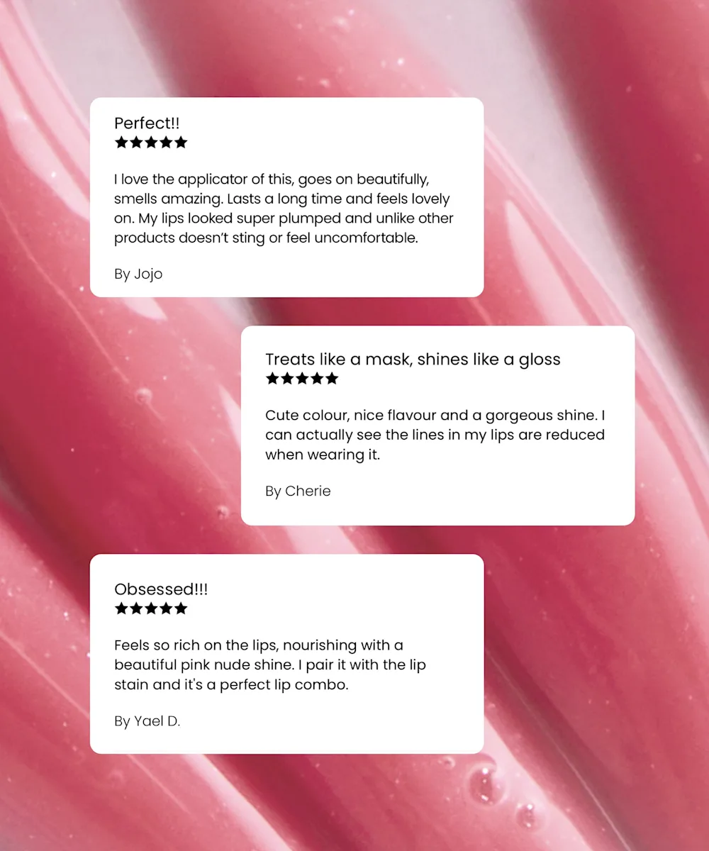 Tripeptide and Hyaluronic Acid: Leaves lips looking fuller and plumper whilst increasing hydration and softening lips.