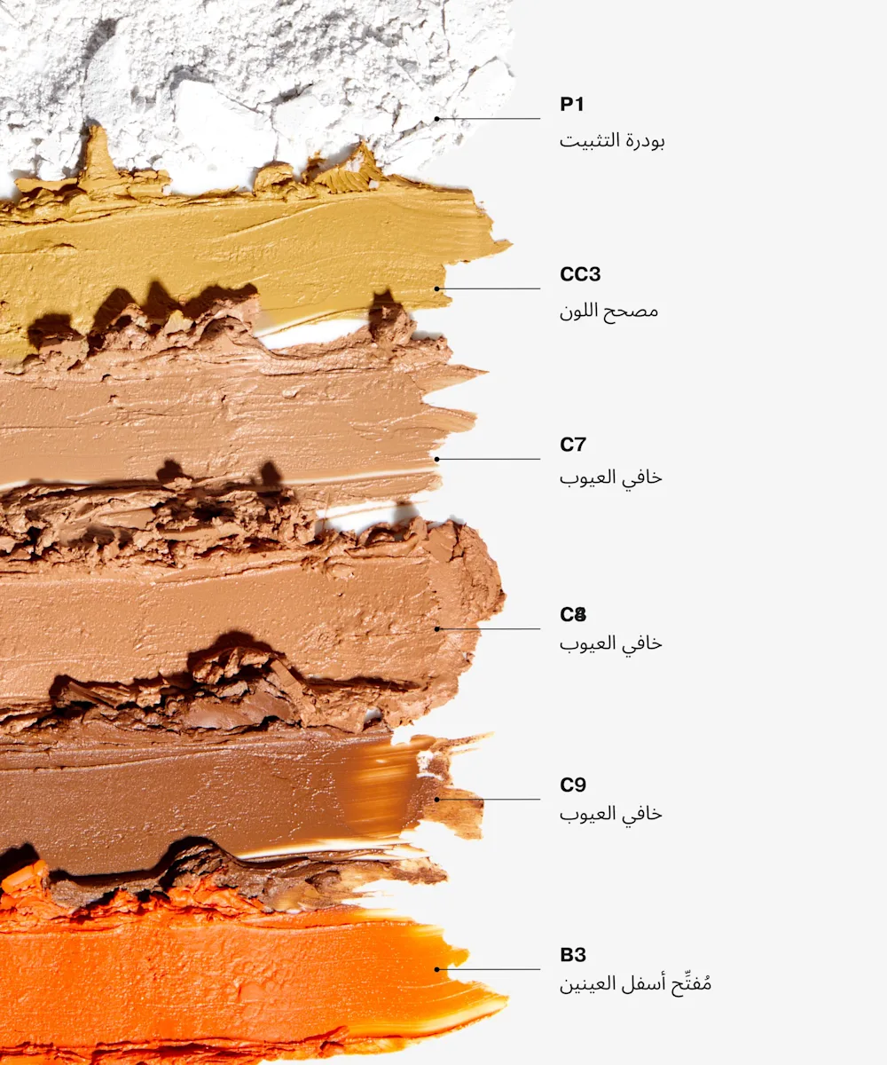 Cc3: Ethylhexyl Palmitate, Polyglyceryl-2 Triisostearate, Caprylic/Capric Triglyceride, Synthetic Fluorphlogopite, Polyethylene, Hydrogenated Polyisobutene, Dimethicone, Pentaerythrityl Tetraisostearate, Kaolin, Bis-Diglyceryl Polyacyladipate-2, Phenoxyethanol, Tocopheryl Acetate, Tocopherol, Sunflower Seed Oil Glyceride, Titanium Dioxide (CI 77891), Iron Oxides (CI, 77491, CI 77492, CI 77499).