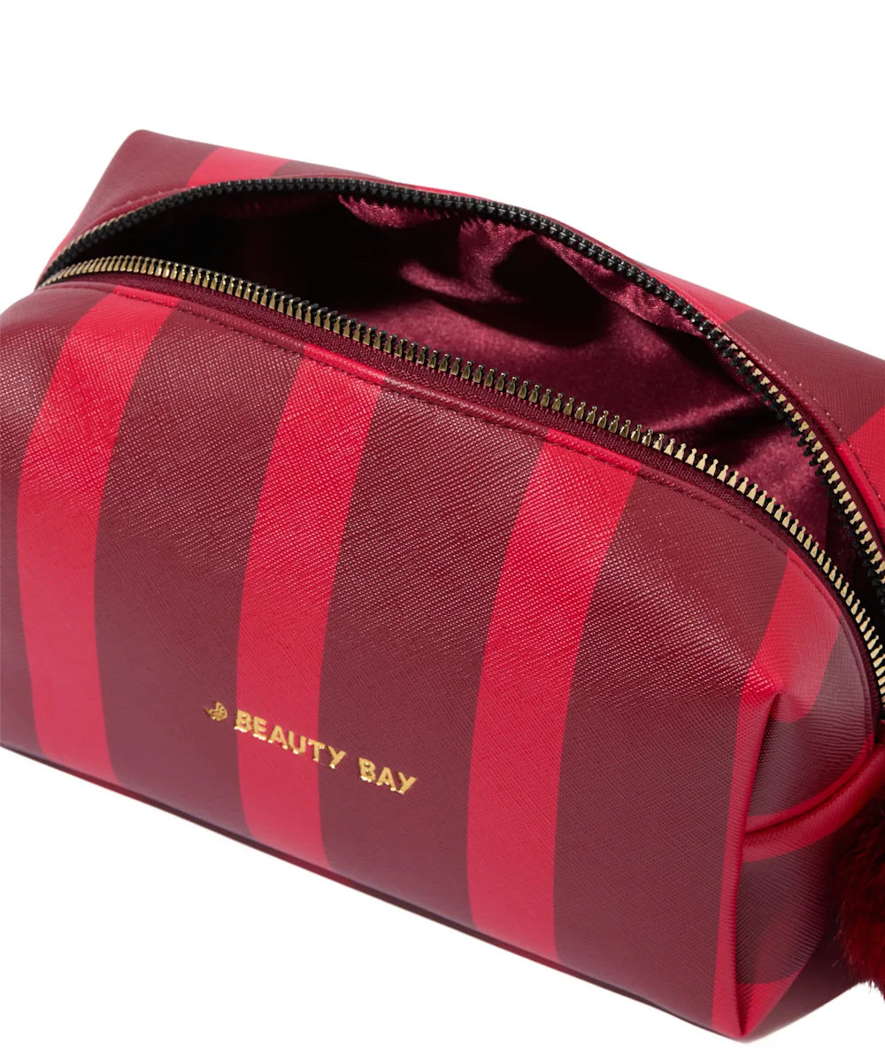 حافظي على مكياجك، ومستحضرات العناية بالبشرة، والعناية بالشعر، وأدوات الجمال آمنة داخل حقيبة المكياج المخططة من By BEAUTY BAY. تتميز بتصميم مخطط باللونين الأحمر والبورجوندي وببطانة حريرية بورجوندية لمسة خفيفة من الاحتفال. تحتوي على مقصورة واحدة، حيث يتم الاحتفاظ بجمالك بأمان في مساحة واسعة واحدة. مزودة بأجهزة من الذهب، وشعار BEAUTY BAY المحفور بالذهب، وشكل جميل بوم بوم أحمر على سحّاب الإغلاق، إنها الترقية المثالية عن حقيبة الجمال الأساسية الخاصة بك.