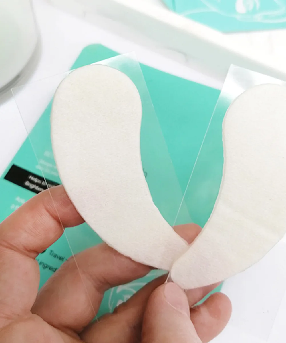 - ضع الرقع تحت العينين بحيث يكون الجزء الأرق من الرقعة في الزاوية الداخلية للعين.