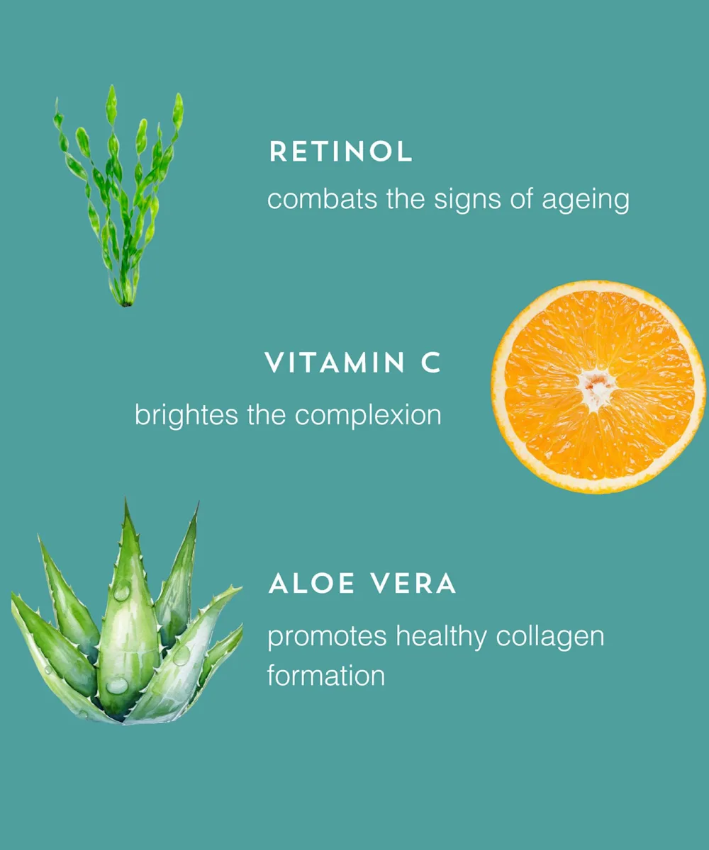 Aqua, Glycerin, Sorbitol, Cellulose Gum, Kaolin, Polyacrylic Acid, Ricinus Communis (Castor) Seed Oil, Sodium Polyacrylate, Allantoin, Aluminum Glycinate ,Niacinamide, Octyldodecanol, Panthenol, Tartaric Acid, Butylene Glycol, Aloe Barbadensis Leaf Juice Powder , Disodium EDTA ,Tocopheryl Acetate, Ubiquinone,Retinyl Palmitate, Lecithin,1,2-Hexanediol, Tocopherol,Citrus Unshiu Peel Extract, Ascorbyl Palmitate, Phenoxyethanol,CI 77492,CI 77891,Limonene,Linalool, Parfum