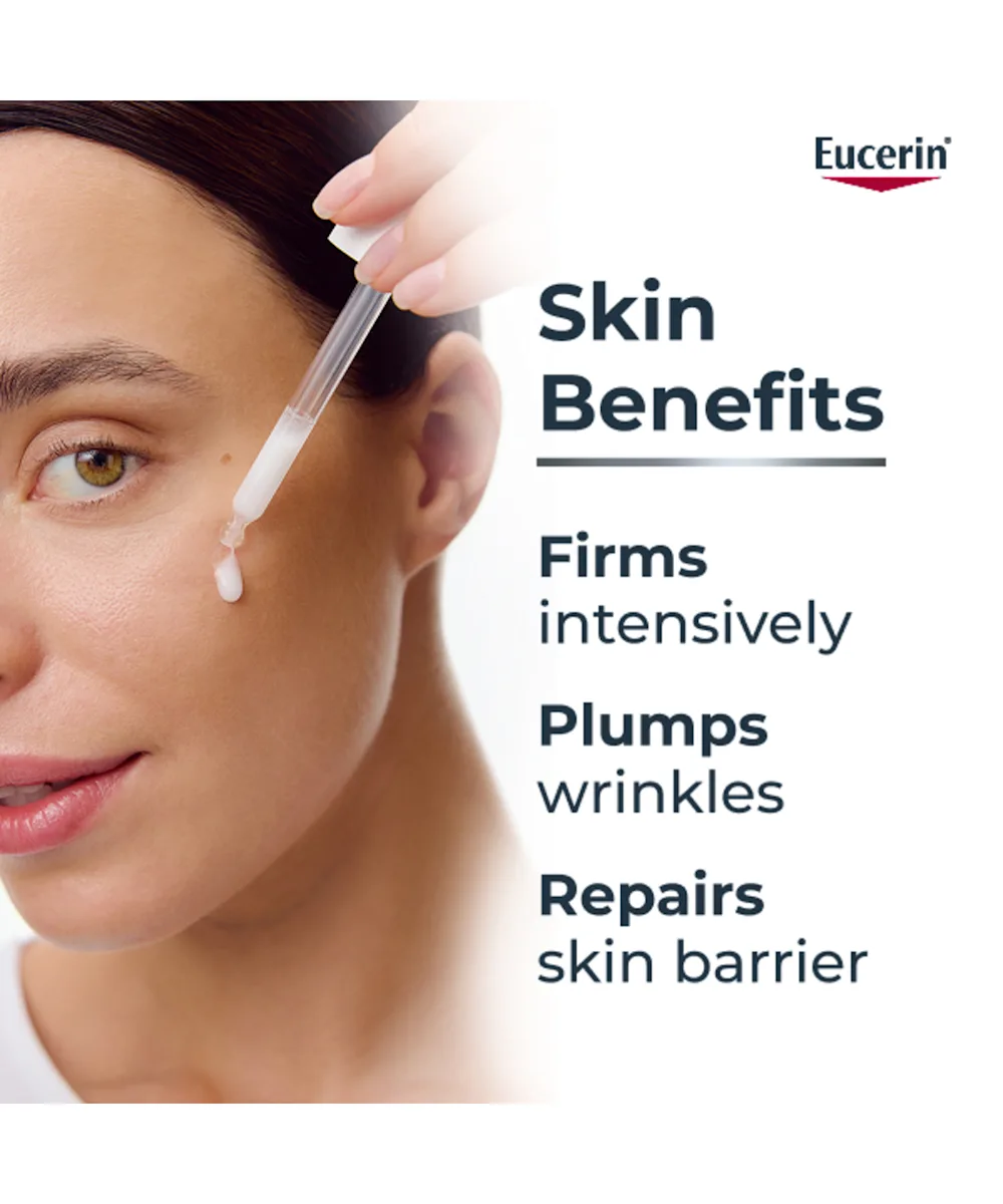 قم بتحسين جودة بشرتك مع سيروم Eucerin Hyaluron Filler Firming. يقوي هذا السيروم المشد لمكافحة الشيخوخة البشرة بشكل مكثف ويملأها بينما يقلل من ظهور الخطوط الدقيقة والتجاعيد. بتركيز قوي بنسبة 5٪ من بروفيتامين B5 (بانثينول)، يقوي حاجز البشرة ويعزز التجدد لزيادة المرونة ضد العوامل الخارجية. حمض الهيالورونيك الصغير يرطب بعمق للحصول على ترطيب دائم، بينما يعزز الإيكتوين مرونة البشرة ويهدئ التهيج على الفور. معزز بالغليسرين، مرطب البشرة الطبيعي، هذا السيروم الخفيف جدًا يقاوم الشيخوخة، ويحسن جودة البشرة، ويترك البشرة أكثر مرونة ونعومة وصحة.