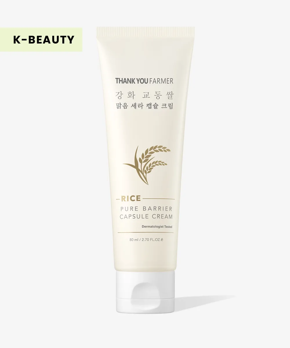 قوة، وتهدئة، وترطيب مع Thank You Farmer Rice Pure Barrier Capsule Cream، وهو تركيبة تم اختبارها من قبل أطباء الجلد مصممة للبشرة الجافة، الحساسة، أو التي تعاني من تضرر الحاجز الجلدي. مدعوم بمستخلص الأرز الكوري، والسيراميد، والبانثينول، والنياسيناميد، يهدئ هذا الكريم المغذي التهيج، ويفتح لون البشرة، ويعزز حاجز الترطيب الخاص بك. تقنية كبسولات السيراميد الفريدة تذوب في البشرة، تشكل درعًا قابلًا للتنفس يحبس الترطيب ويدافع ضد عوامل الإجهاد البيئي. تم اختباره سريريًا للحصول على نتائج سريعة، يقدم تحسينات مرئية في قوة الحاجز والتهدئة في غضون ساعة واحدة فقط، مع فوائد تستمر مع مرور الوقت. ستشكر بشرتك على هذا المنتج.