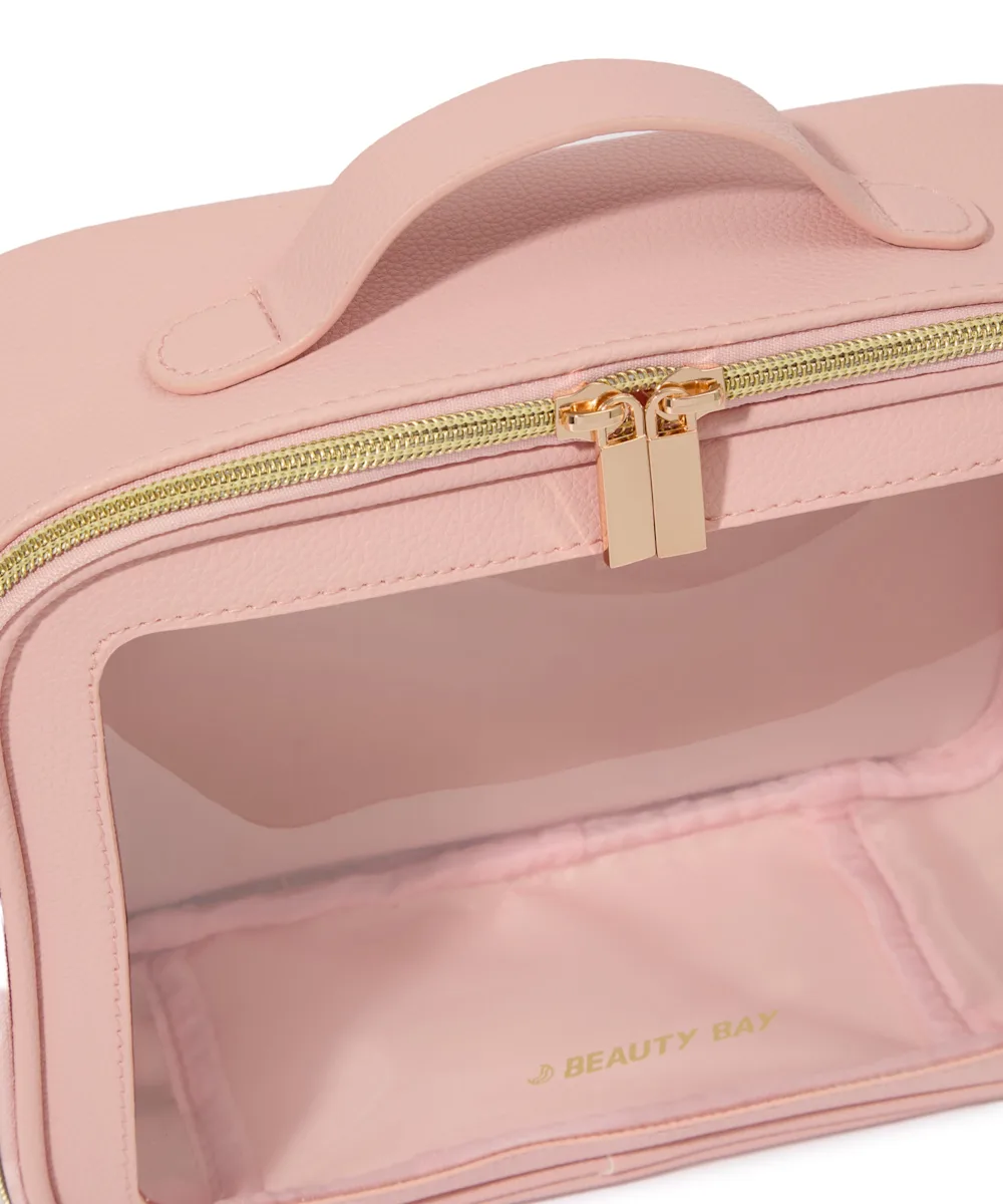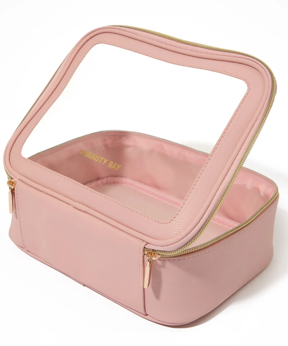 Take your beauty on the go with the By BEAUTY BAY Travel Makeup Bag. Find what you need in no time by seeing exactly what’s inside, thanks to the transparent front panel. Practical and stylish, it has one compartment and a secure zip to keep your makeup, skincare, and beauty bits safe. Made of 100% PVC, it features gold hardware and a gold BEAUTY BAY logo.