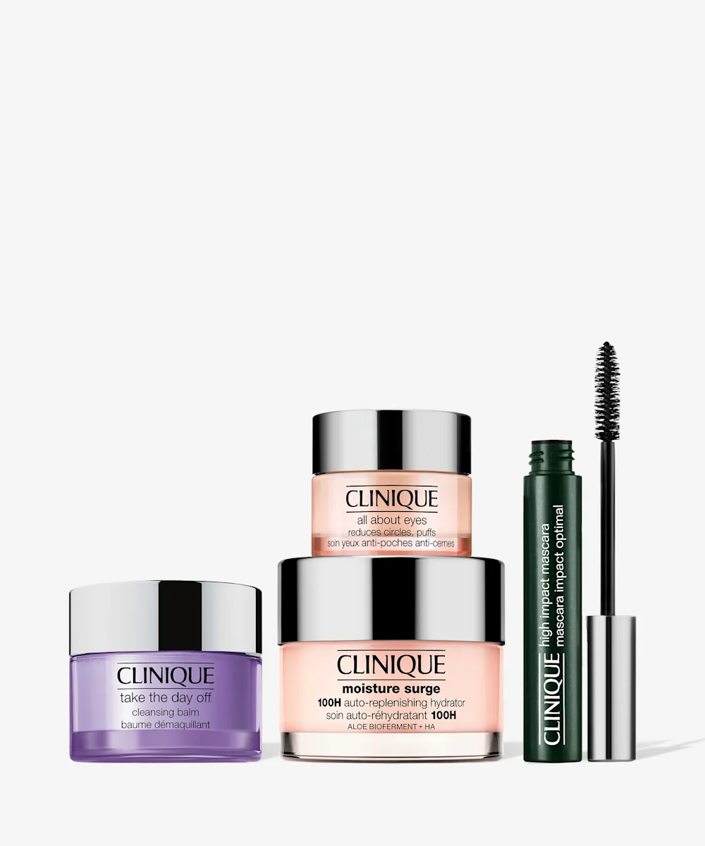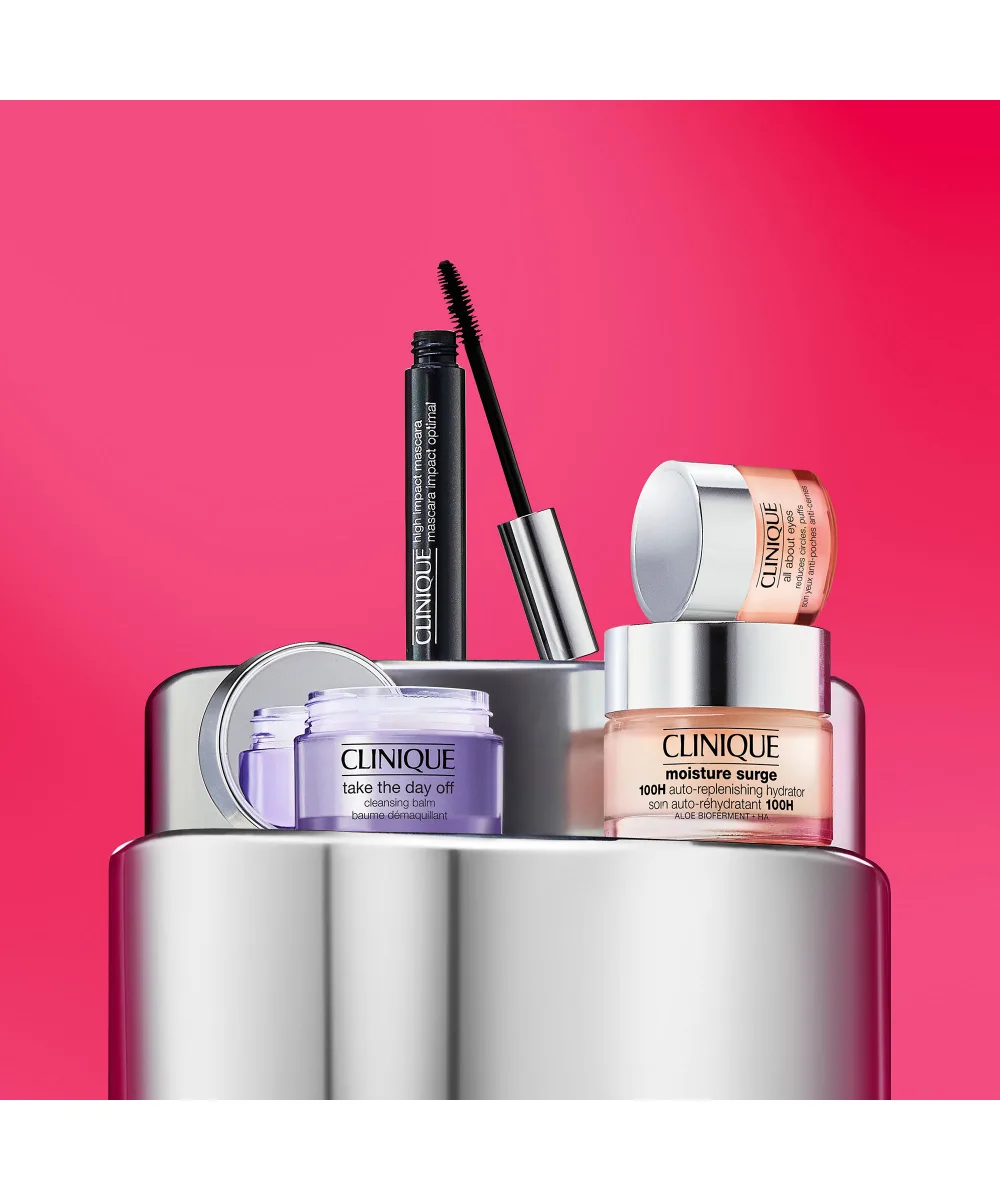 Find all your faves in one place by adding the Clinique Fan Favourites Beauty Gift Set to your basket. Starring a selection of Clinique fan-faves, this all-star lineup features a full-size Surge™ 100H Auto-Replenishing Hydration, an oil-free gel-cream moisturiser and a full-size High Impact™ Mascara in Black, a lengthening mascara. As well as a full-size All About Eyes™, a lightweight eye cream, and a mini but mighty Take The Day Off™ Cleansing Balm, an oil-free, makeup-melting mousse.