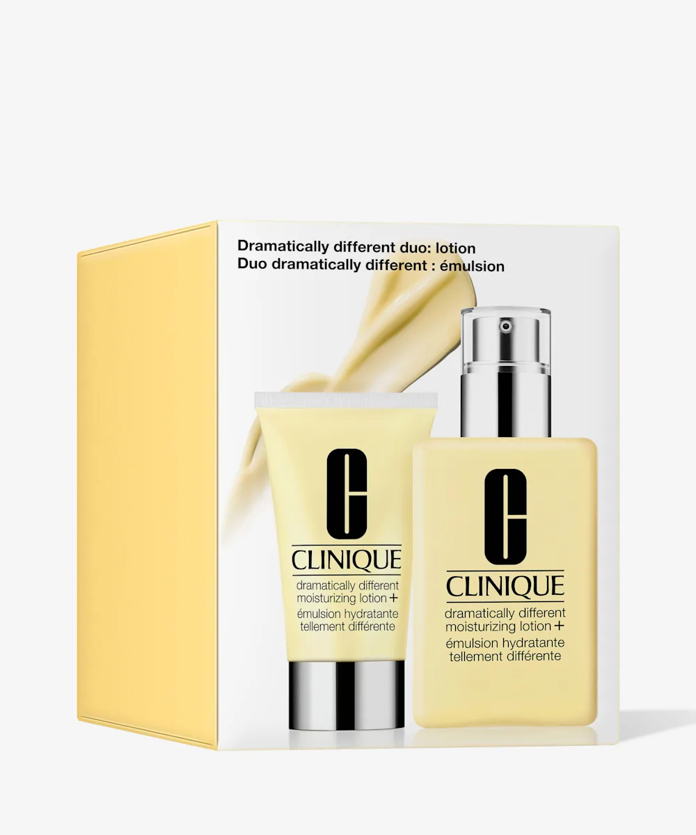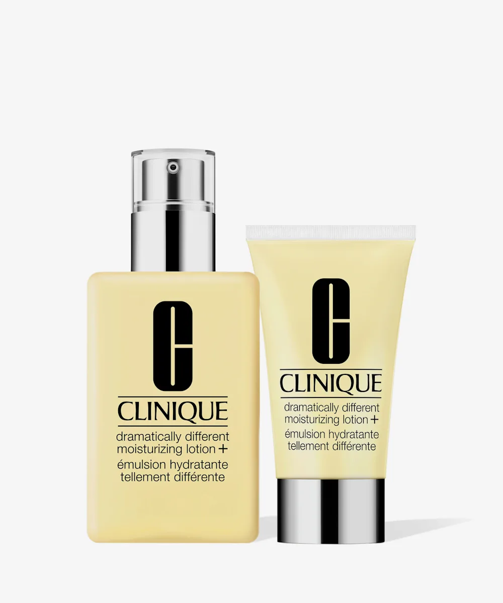 Support your skin’s moisture barrier by hauling Clinique’s Dramatically Different Moisturizing Lotion+ Duo: Skincare Gift Set. This duo contains a jumbo and travel-size moisturising lotion that strengthens the skin's moisture barrier and enriches the skin with eight hours of hydration. Formulated with a moisturising medley of barley, sunflower and cucumber, this lotion quickly absorbs to replenish the skin’s water-oil balance and to draw and lock in moisture for noticeably smoother and softer skin.