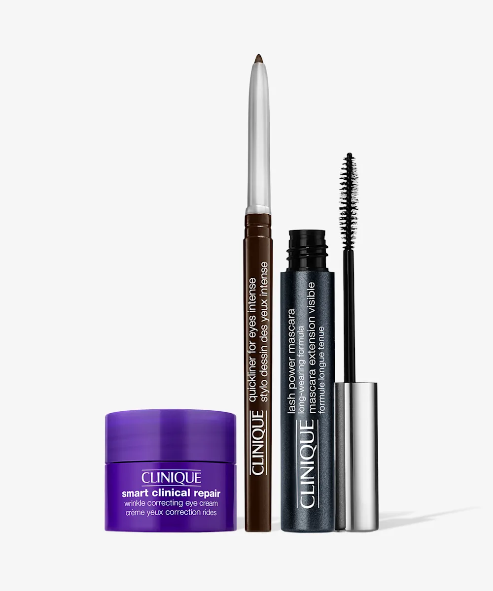 Define, brighten and perfect your eyes with the Clinique Eye Essential: 24 Hour Lashes Lash Power Mascara Gift Set. Featuring a long-wearing mascara, a richly pigmented eyeliner and a wrinkle-correcting eye cream, this set has everything you need for all-day impact.