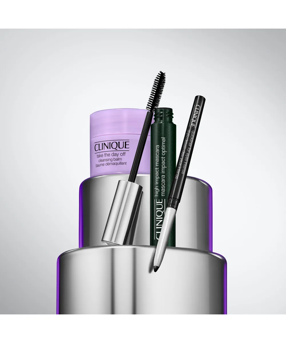 Take your eye look to the next level with the Clinique Eye Essentials: High Impact Lashes Mascara Gift Set. Featuring a full-size of Clinque’s bestselling mascara, plus a richly pigmented eyeliner and a cult-favourite cleansing balm, this set has everything you need to define, dramatise and effortlessly remove your eye makeup.