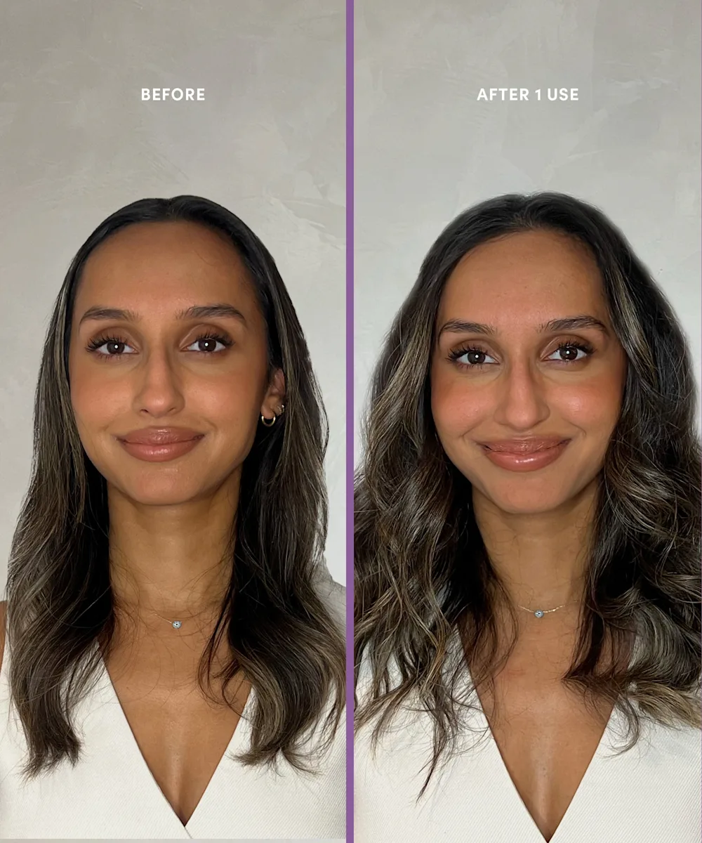 - Après avoir utilisé le shampoing volumisant (vendu séparément), appliquez au moins 3 doses de produits sur vos mèches, des mi-longueurs aux pointes.