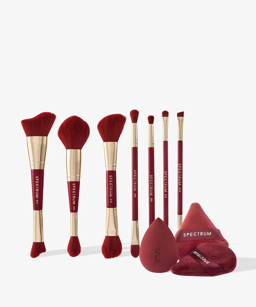 Very Cherry 10 Piece Dual End Brush Set with Puffs and Sponge Blender