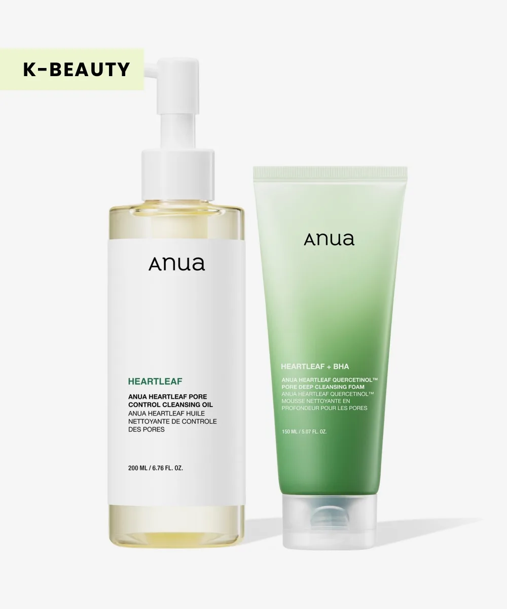 Purge your pores with the ANUA Heartleaf Pore Control Cleansing Oil & Deep Cleansing Face Wash. Giving you step one and two of your double cleansing routine, this set features the Heartleaf Pore Control Cleansing Oil, a pore-regulating, anti-inflammatory cleansing oil. Plus, the Heartleaf Quercetinol Pore Deep Cleansing Foam, a pore-decongesting cleansing foam.