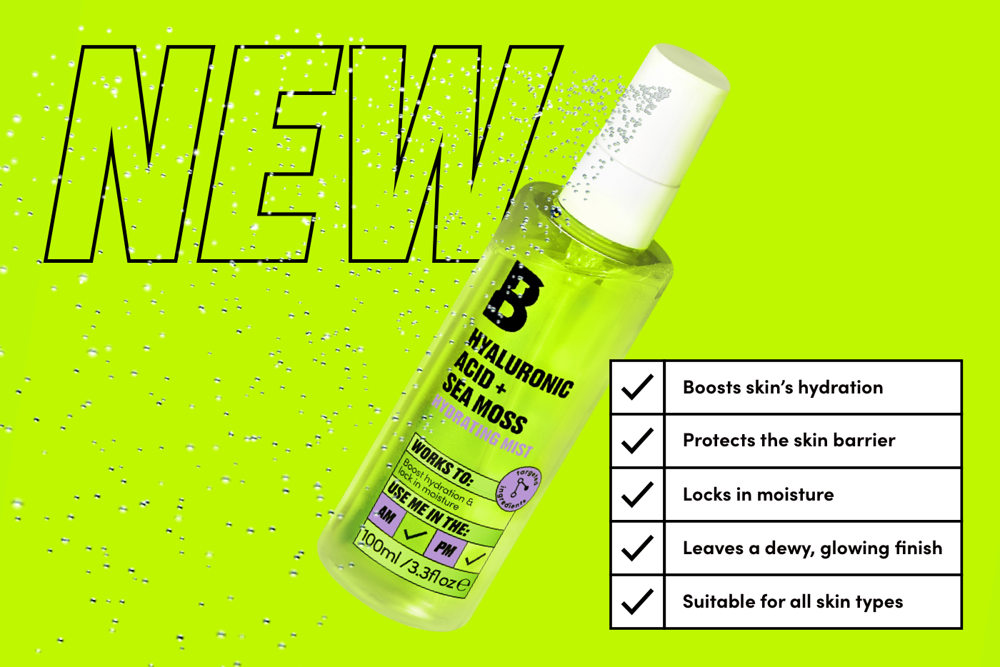 Working hard to boost skin’s hydration and lock in moisture, while leaving a dewy, glowing finish, the By BEAUTY BAY Hyaluronic Acid + Sea Moss Hydrating Mist belongs in your daily routine. Hyaluronic acid works to hydrate and refresh for a dewy finish, sea moss extract helps to maintain high levels of hydration in the skin, while softening and smoothing. Added saccharide isomerate also helps to strengthen and protect the skin barrier, making this mist a must-have in every haul.