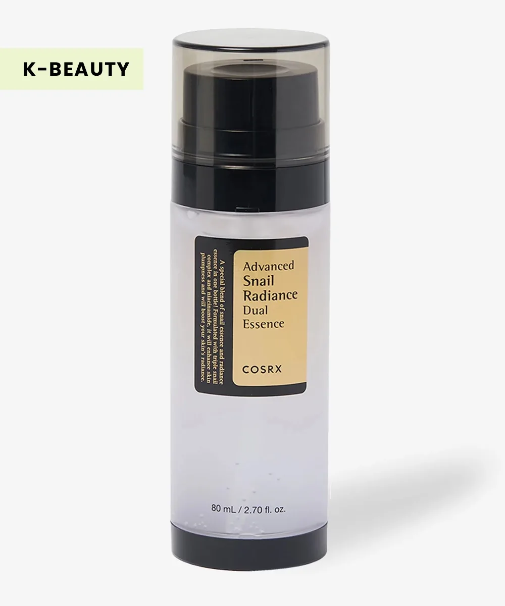 Give the skin a boost of brightness with COSRX’s Advanced Snail Radiance Dual Essence. Formulated with a 74.3% Triple Snail Complex of land snail to lock in hydration and refine the skin’s texture, black mucin to helps with pore control and skin regeneration, and golden shell mucin to block out harmful UV rays and deliver moisture. The formula also includes skincare hero niacinamide to brighten dull skin and strengthen the skin’s barrier for a glowing, healthy complexion.