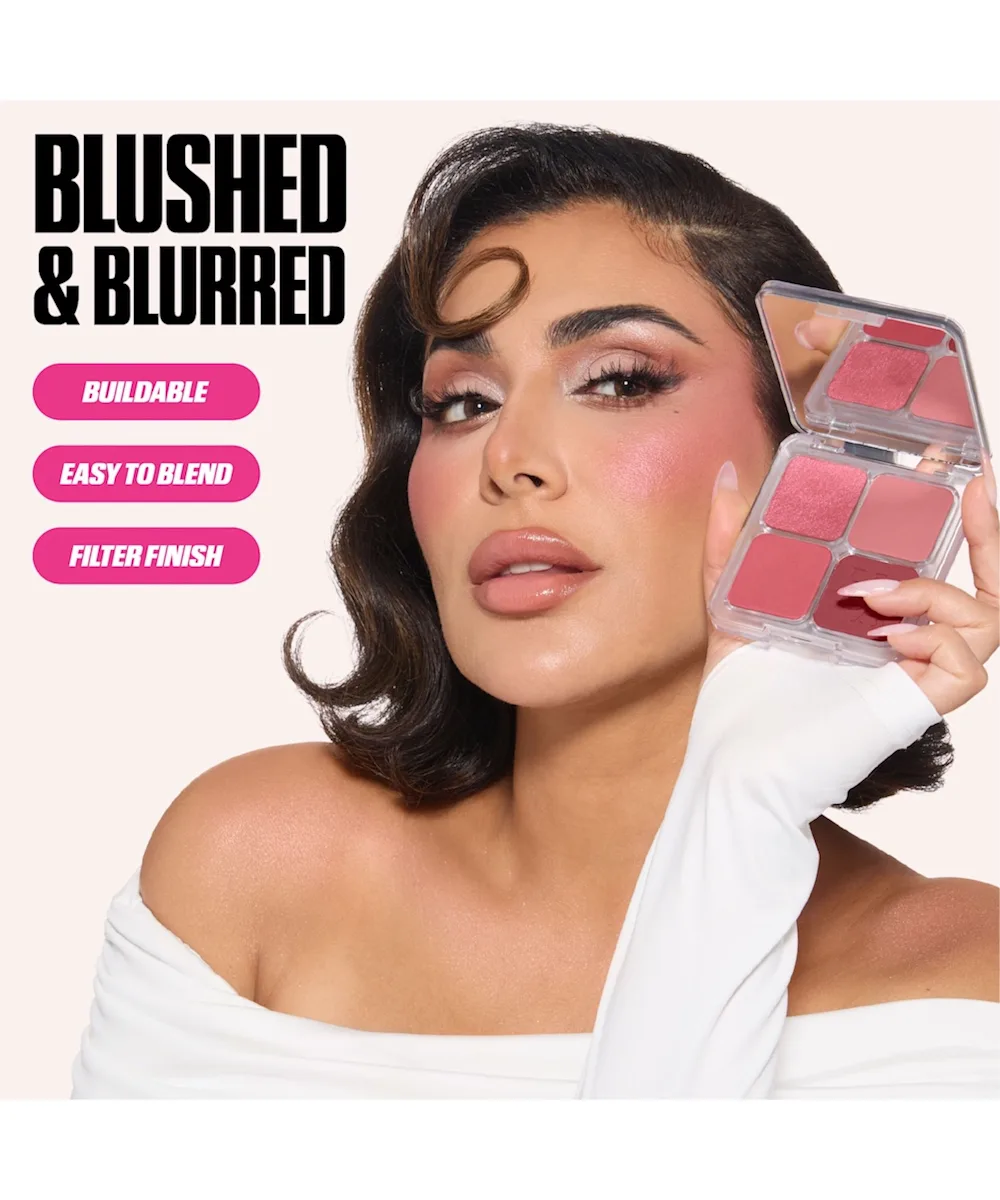 Huda Beauty’s first ever powder blush! These buildable blushes are so easy to use with ultra-pigmented powder matte and pearl ‘blushlighter’ formulas. Designed for multi-use, these matte blushes deliver buildable pigments for effortless color payoff, topped off with a highlighting shade for a soft-focus, blurred & filtered finish.