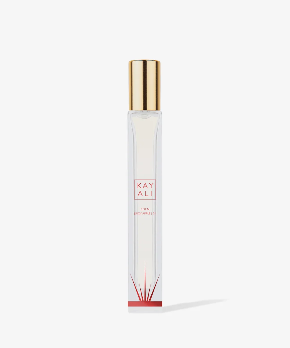 - For a powerful scent trail, spray Eden Juicy Apple | 01 on your pulse points (e.g., inside wrists, behind the knees, center of chest, nape of neck, behind the ears) as well as on clothes.